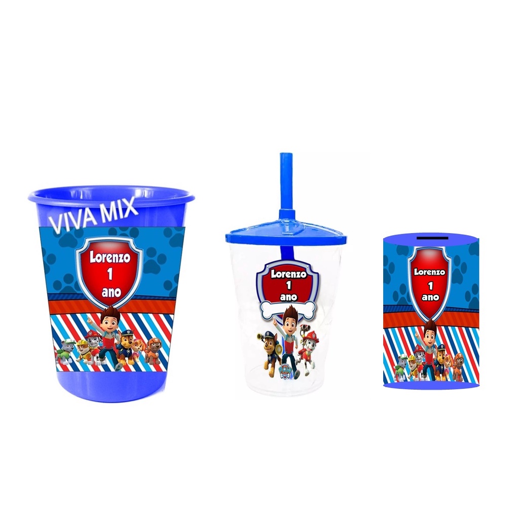 20 Copos Twister 400ml + 20 Baldes de Pipoca 1,5lt + 20 Cofrinhos Kit Personalizado