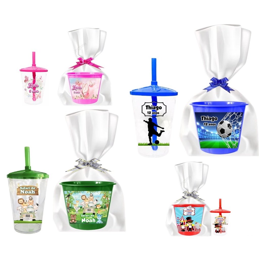 30 Copo Twister + 30 Balde De Pipoca Personalizado (Temos Todos os Temas)