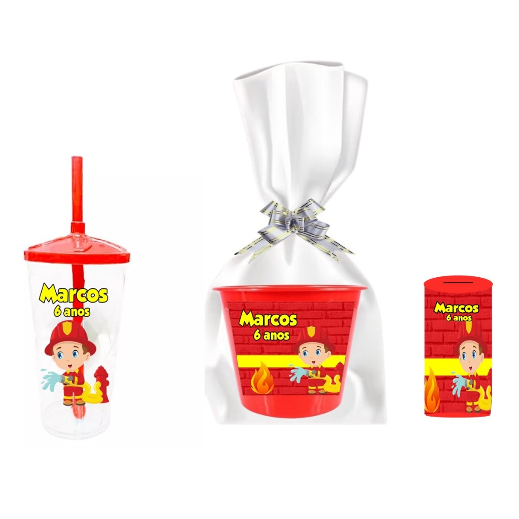 10 Copos Twister 400ml + 10 Baldes de Pipoca 1,5 lt Com embalagem + 10 Cofrinhos Kit Personalizado Fundo do Mar