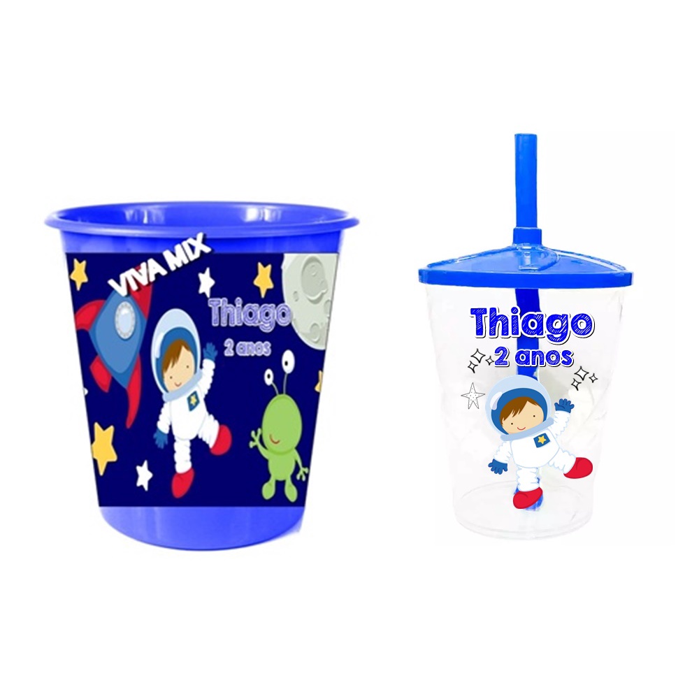 15 Copos Twister + 15 Baldes de Pipoca Kit Festa Personalizado Astronauta