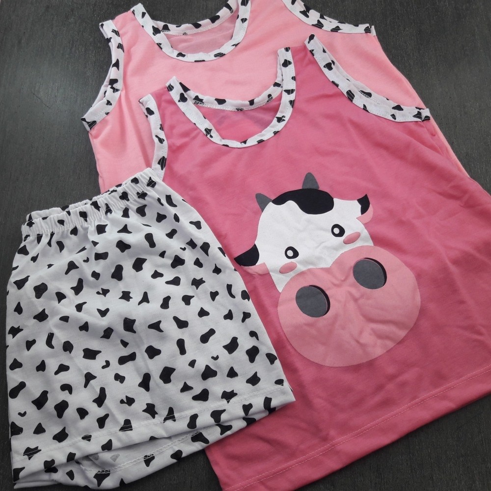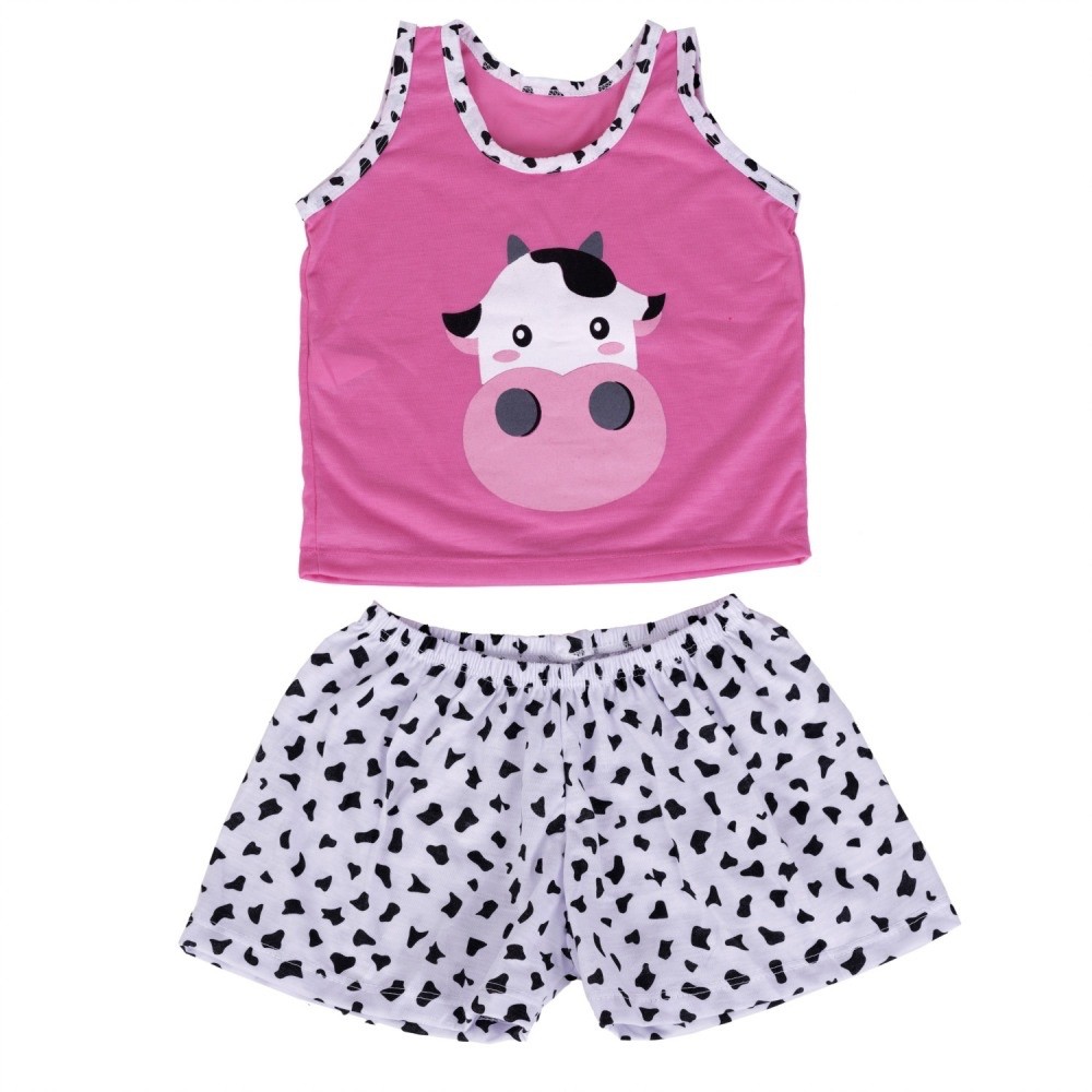 Baby Doll Infantil Regata Vaquinha Kids Menina Menino Criança Regata Estampado Verão Manga Curta Calor Roupa Dormir