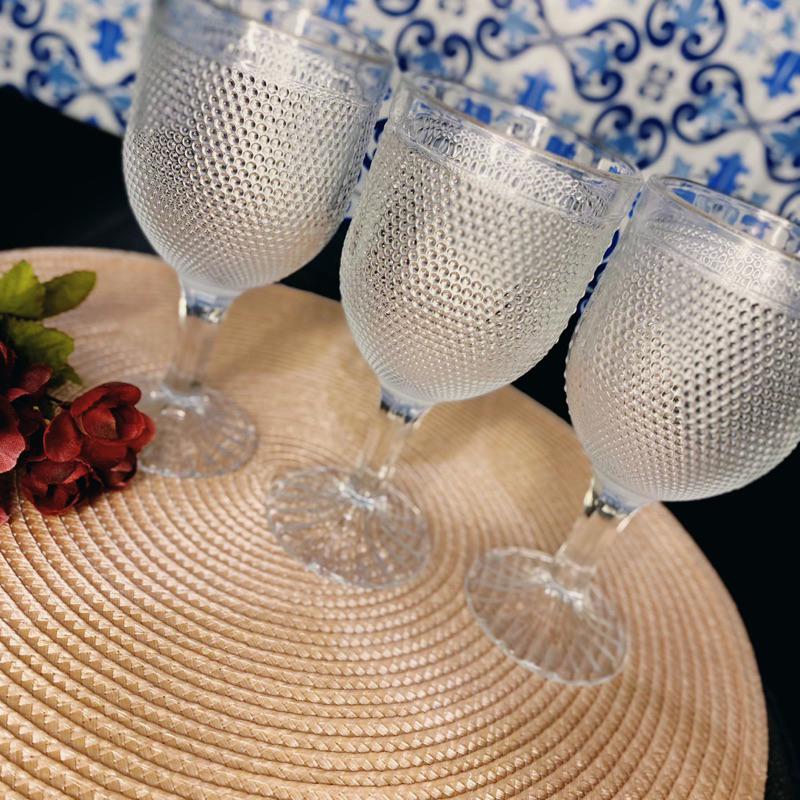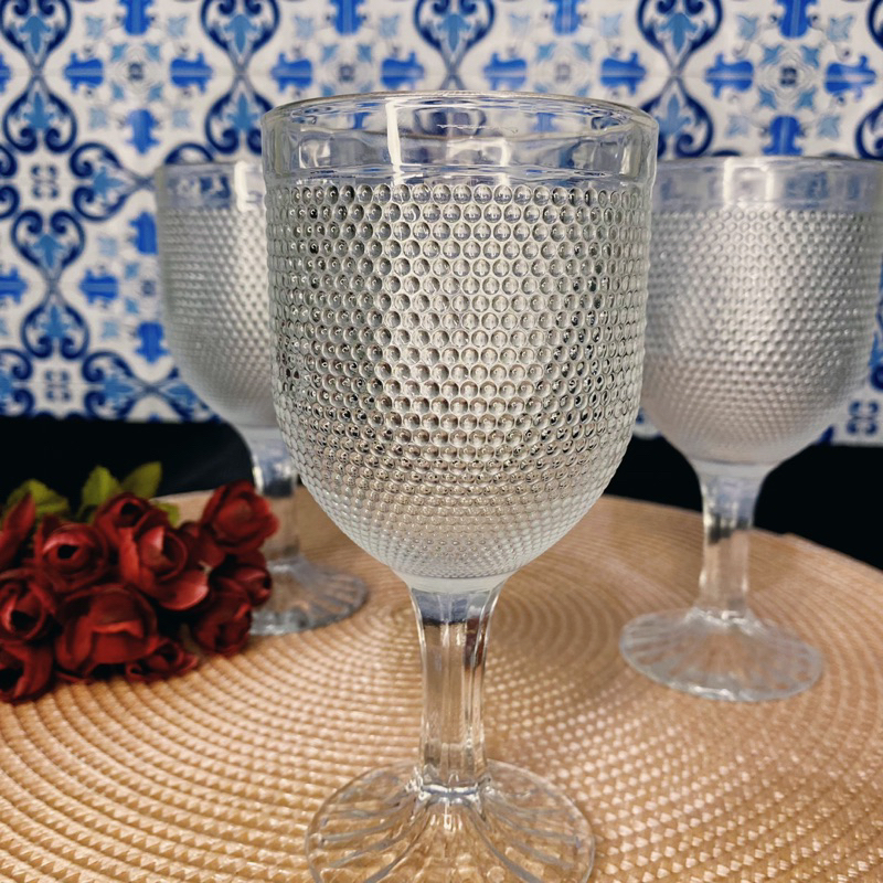 Jogo de Taças em Vidro TRANSPARENTE Gotas - Pontilhado Mesa Posta Luxo Cozinha