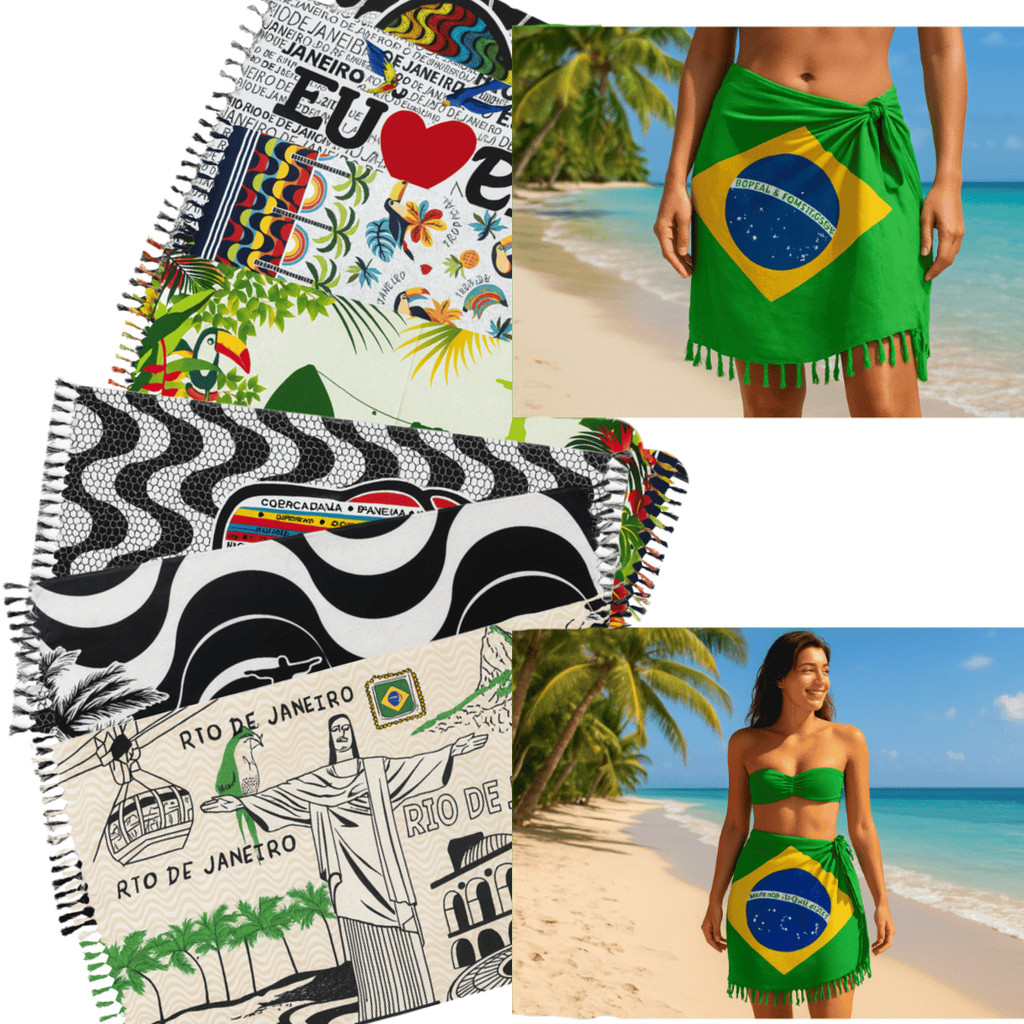Canga de Praia Grande Unissex Feminina Cristo Redentor Rio Fundo Bege Piscina eu amo Rio Copacabana Pareo Farm