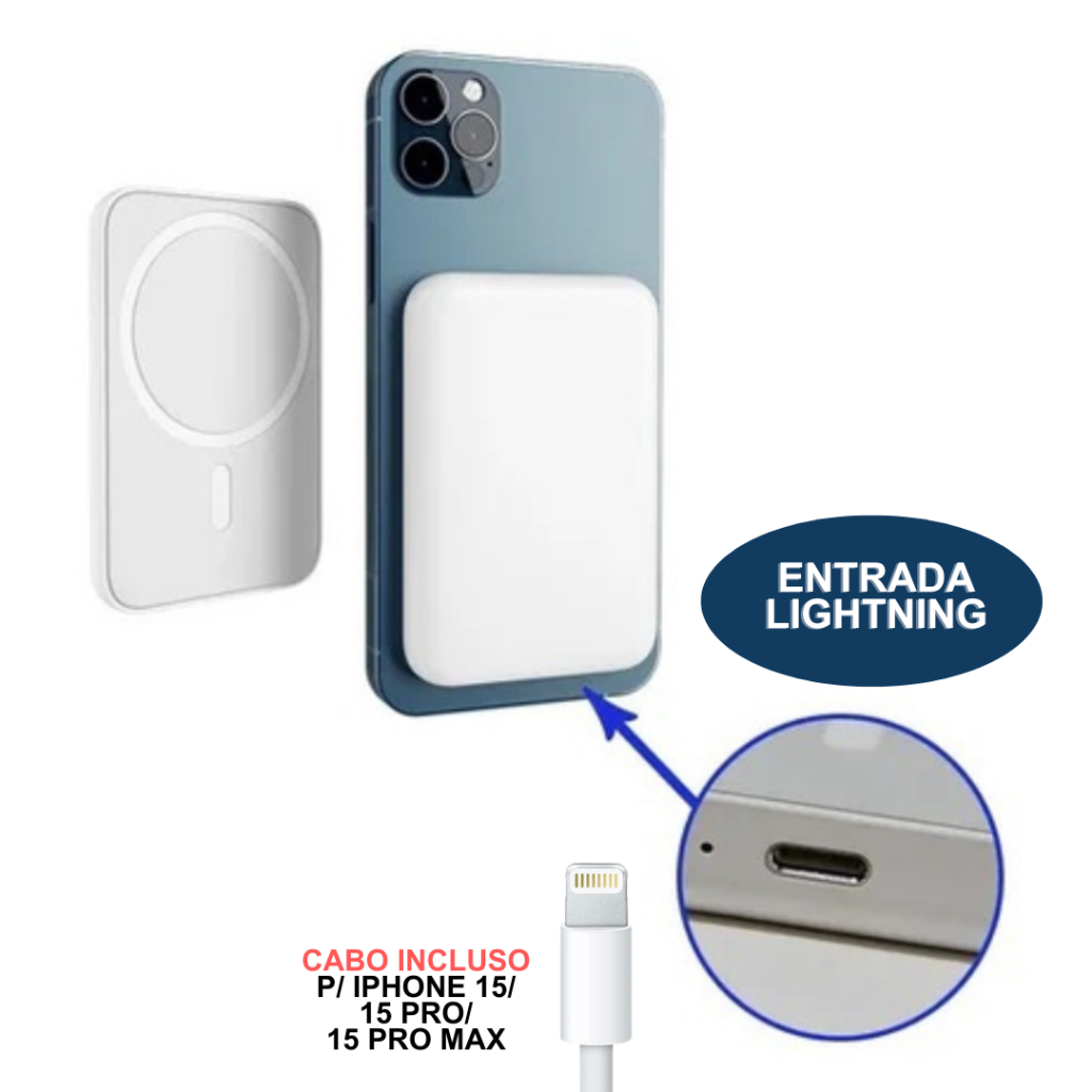 Kit Capa Capinha + Carregador Powerbank Portátil Indução Para iPhone 11 12 13 14 15 16 Pro Max Plus