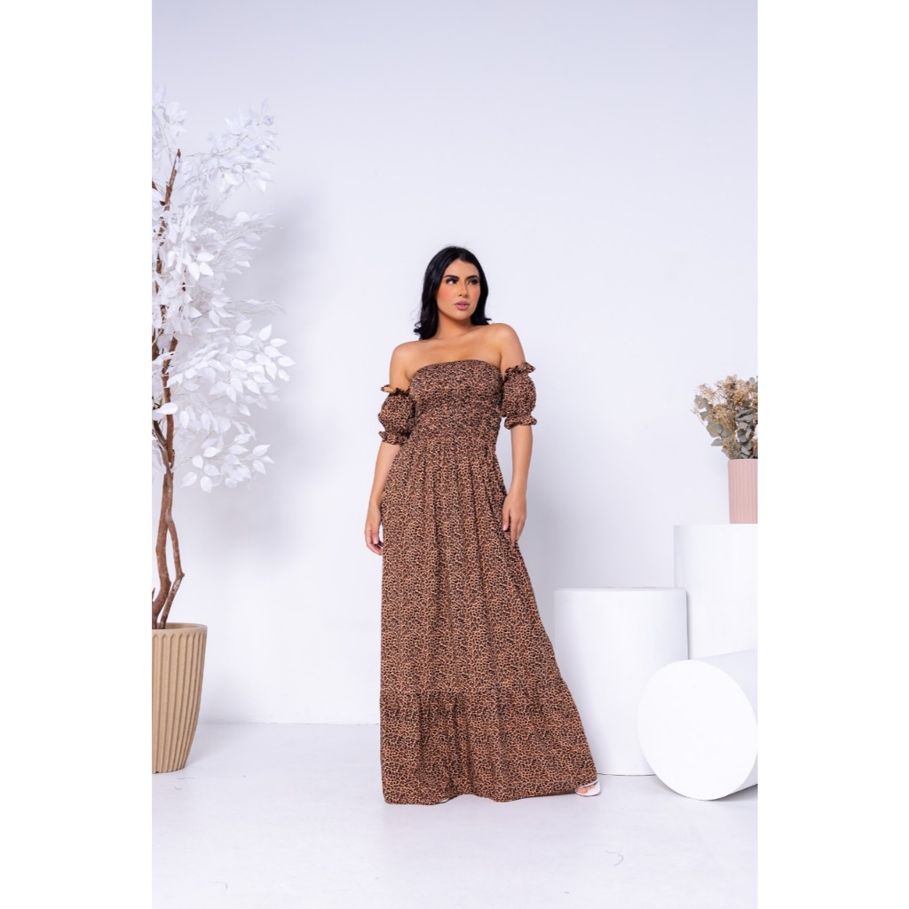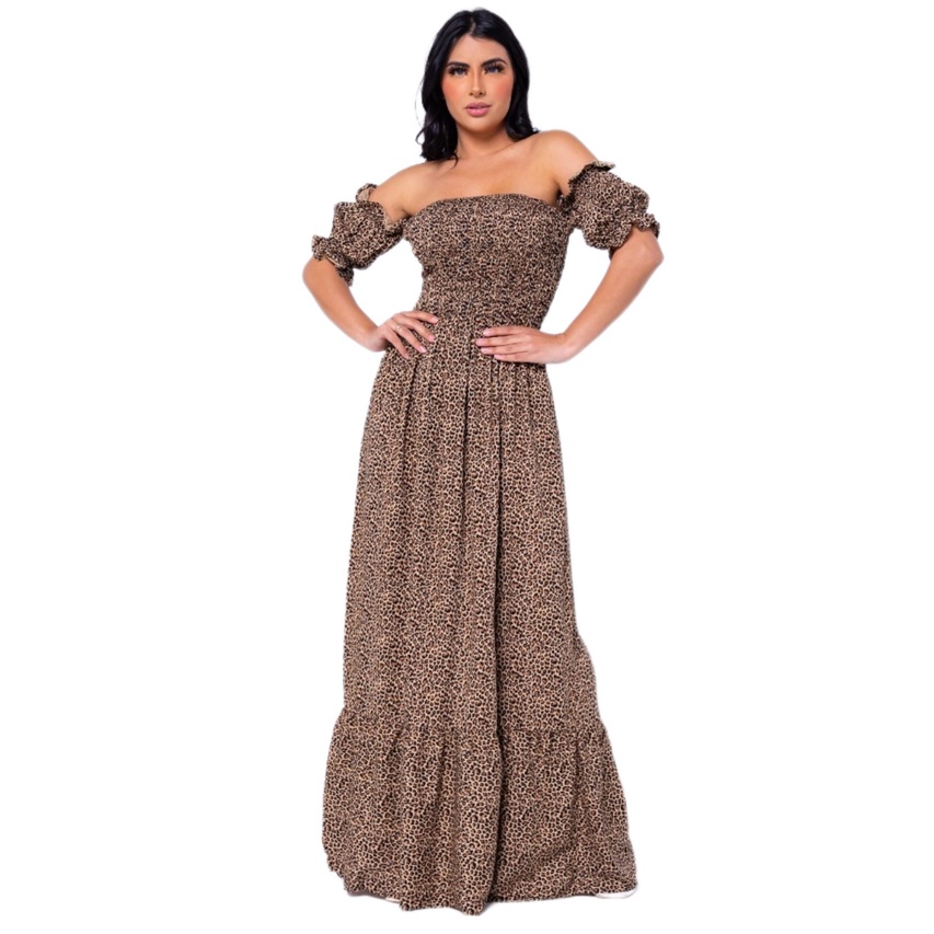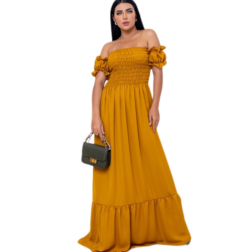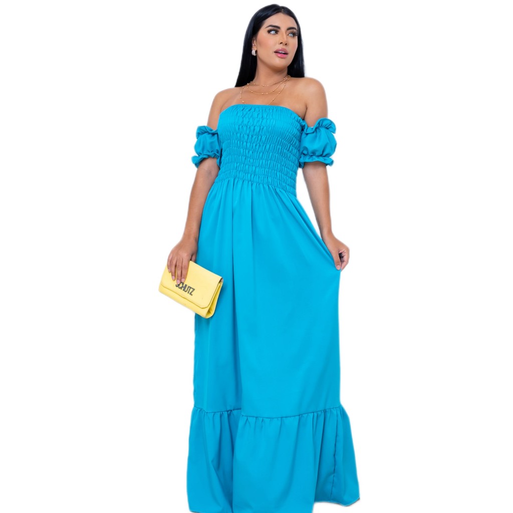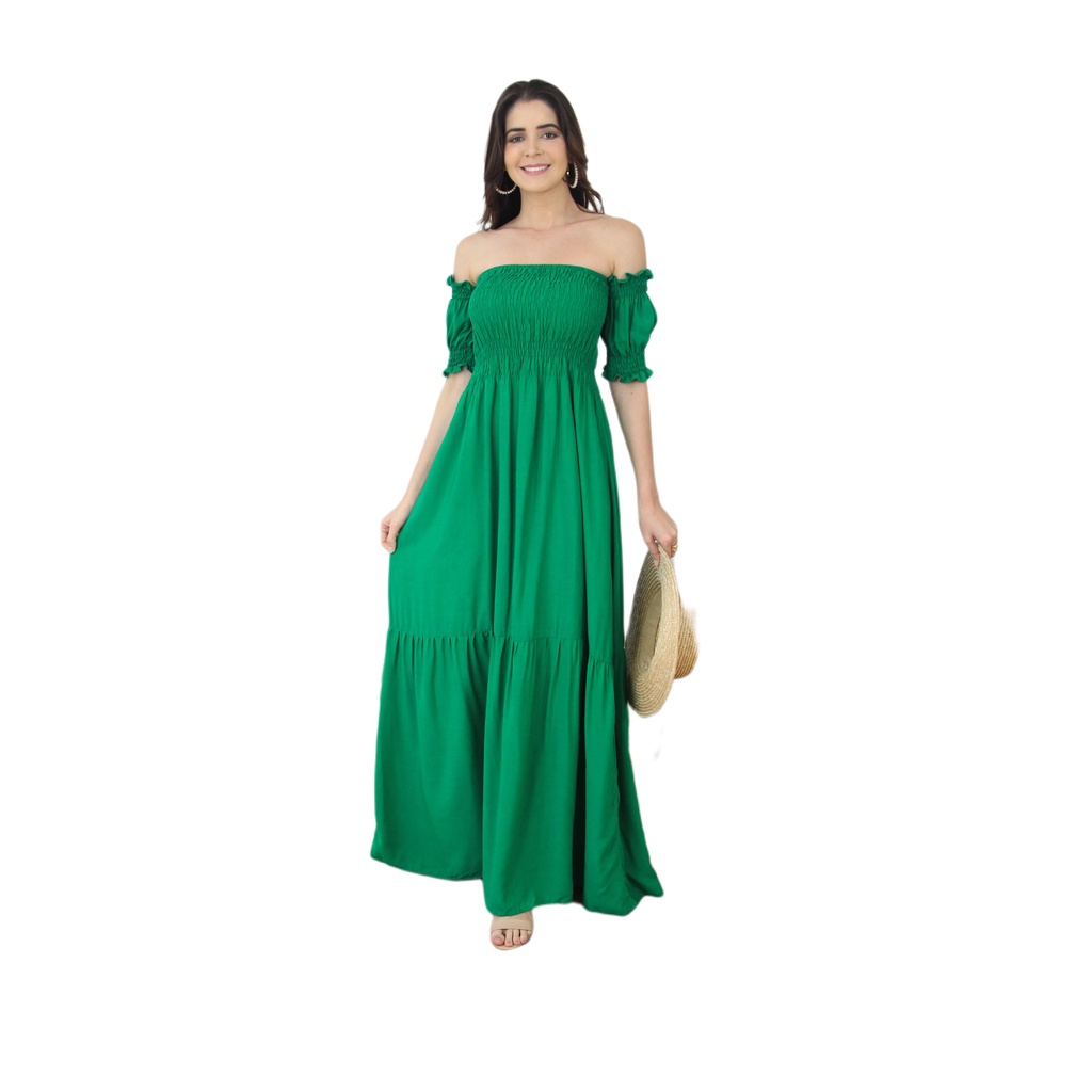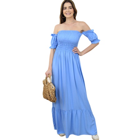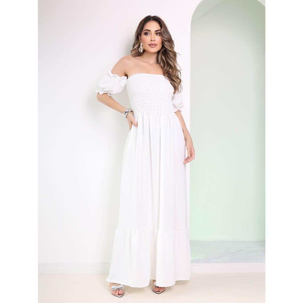 Vestido Longo Manga curto Flare Elastex/COD:V03