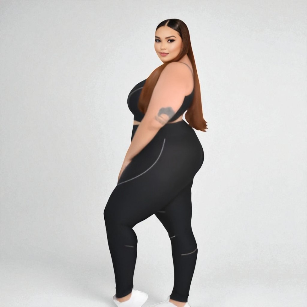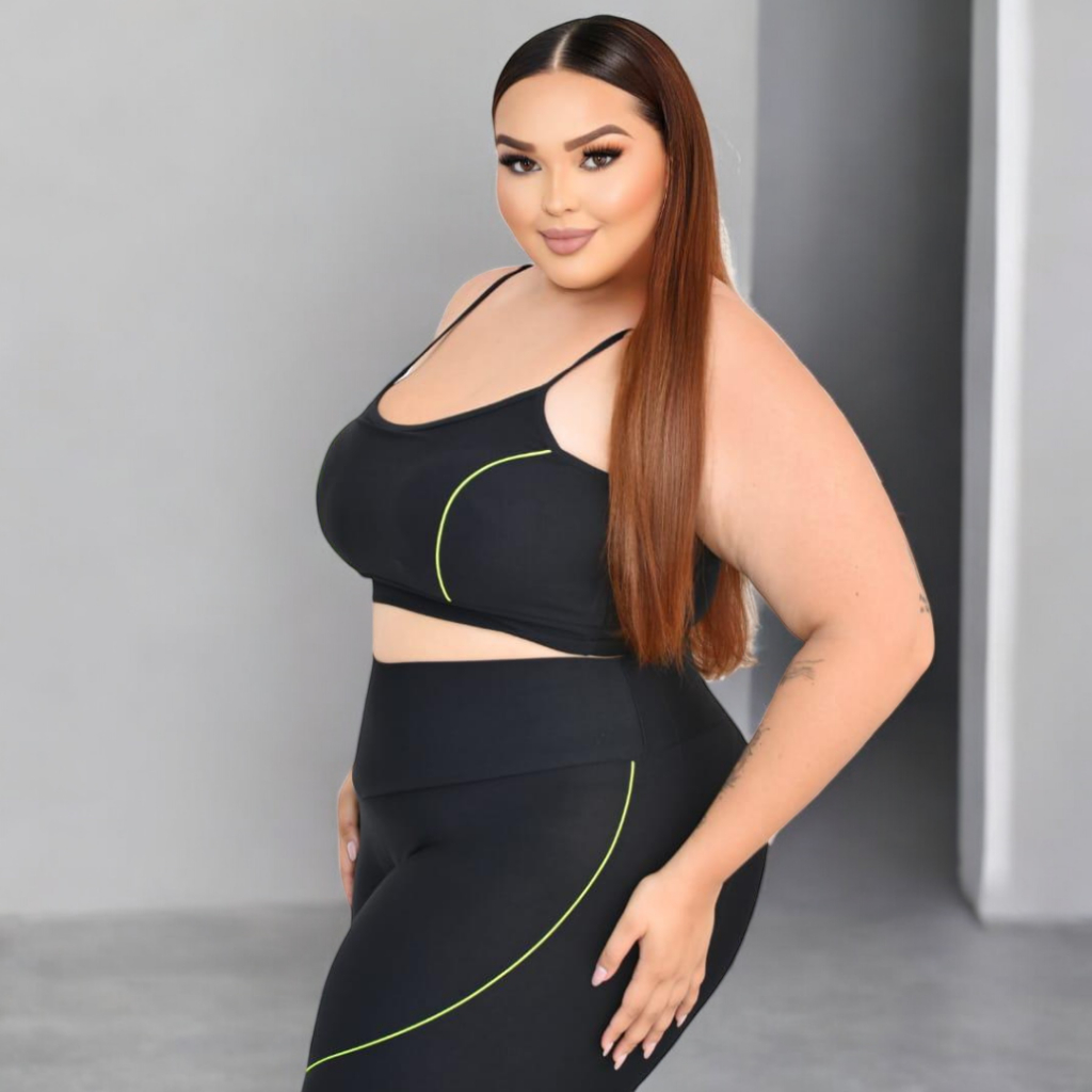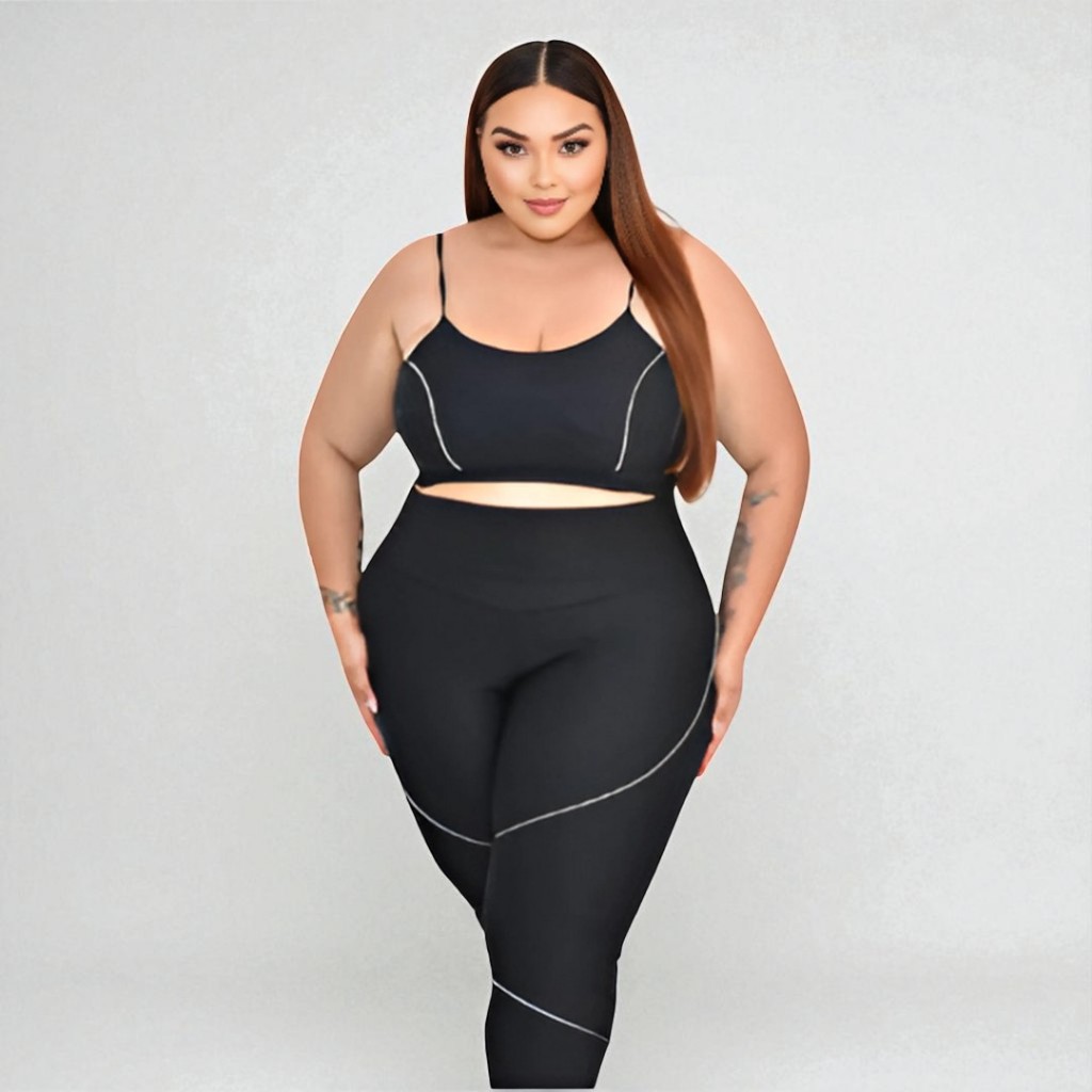 Conjunto De Top e Calça Legging Fitness Plus Size Com Cintura Alta Sem Transparência