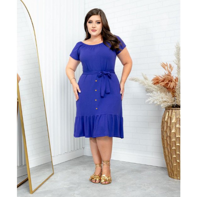 Vestido Midi Evangélico Elegante Com Cinto Rodado Plus Size Roxo Violeta Peplum Sereia Botões