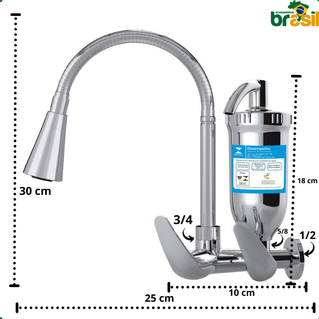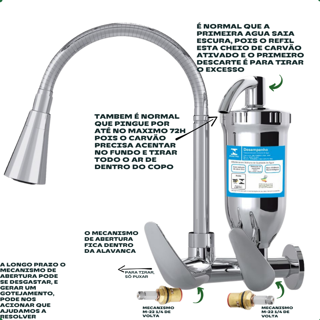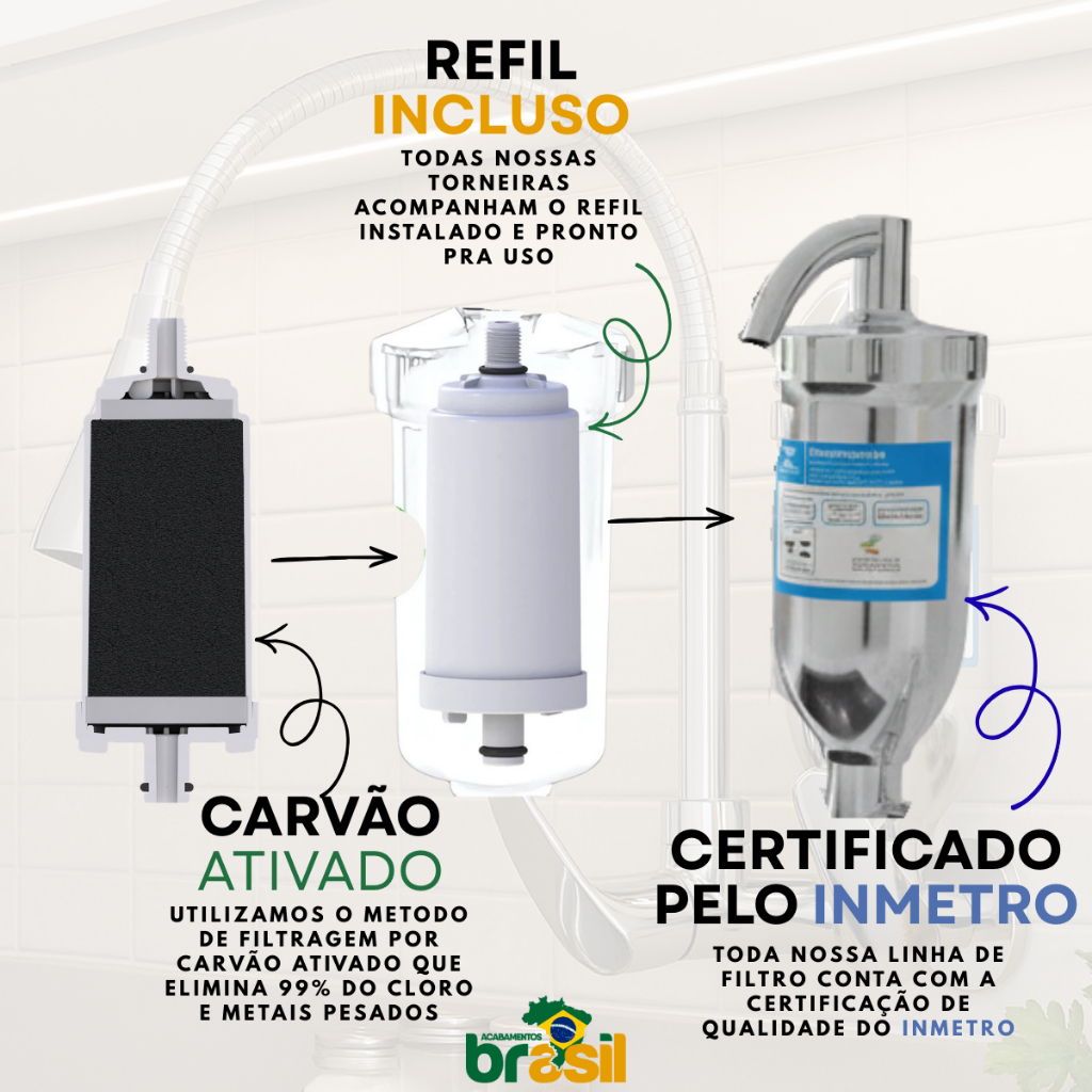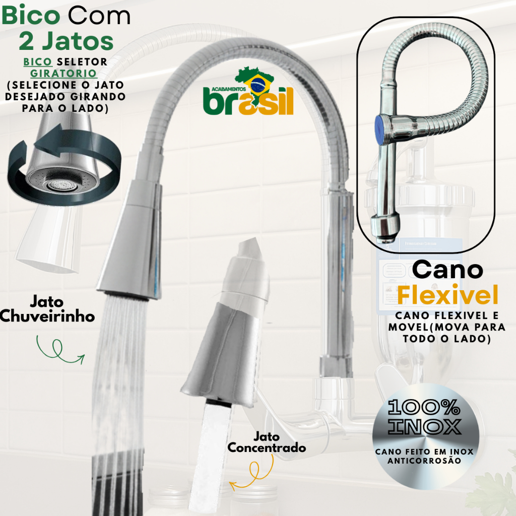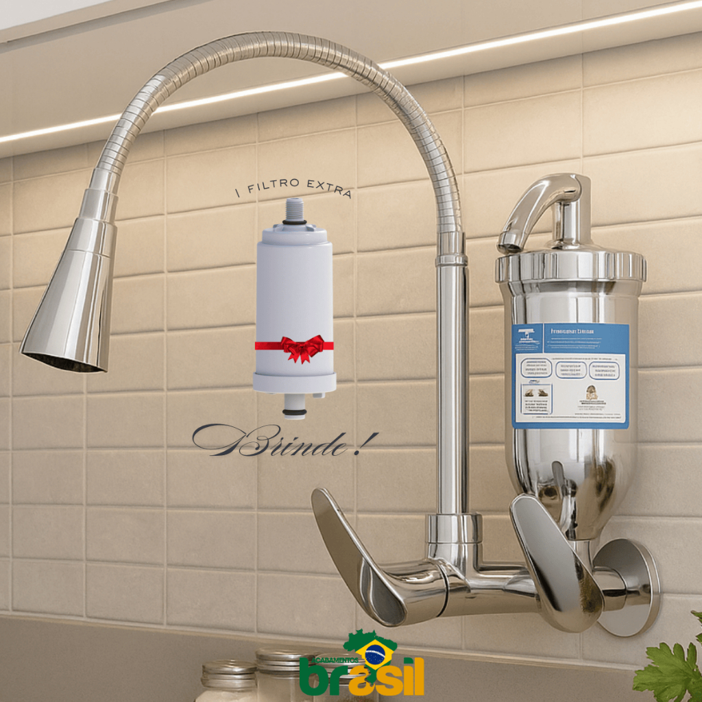 torneira filtro cozinha parede cromada metal com + 1 vela refil extra flexivel gourmet 2 jatos