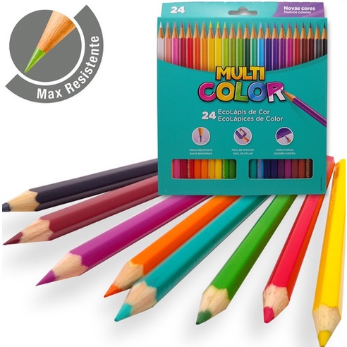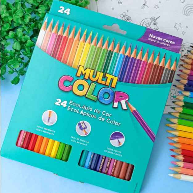 Lápis Ecolápis de Cor Multicolor Original 24 Cores Material Escolar Pintura Volta às Aulas Promoção