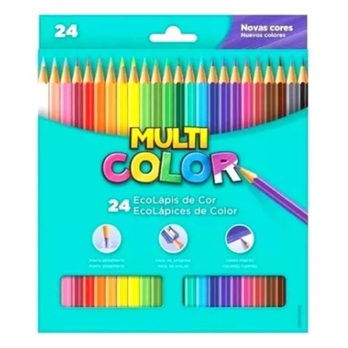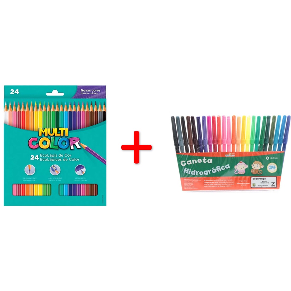 Lápis De Cor Multicolor 24 Cores + Canetinha Color 12 Cores