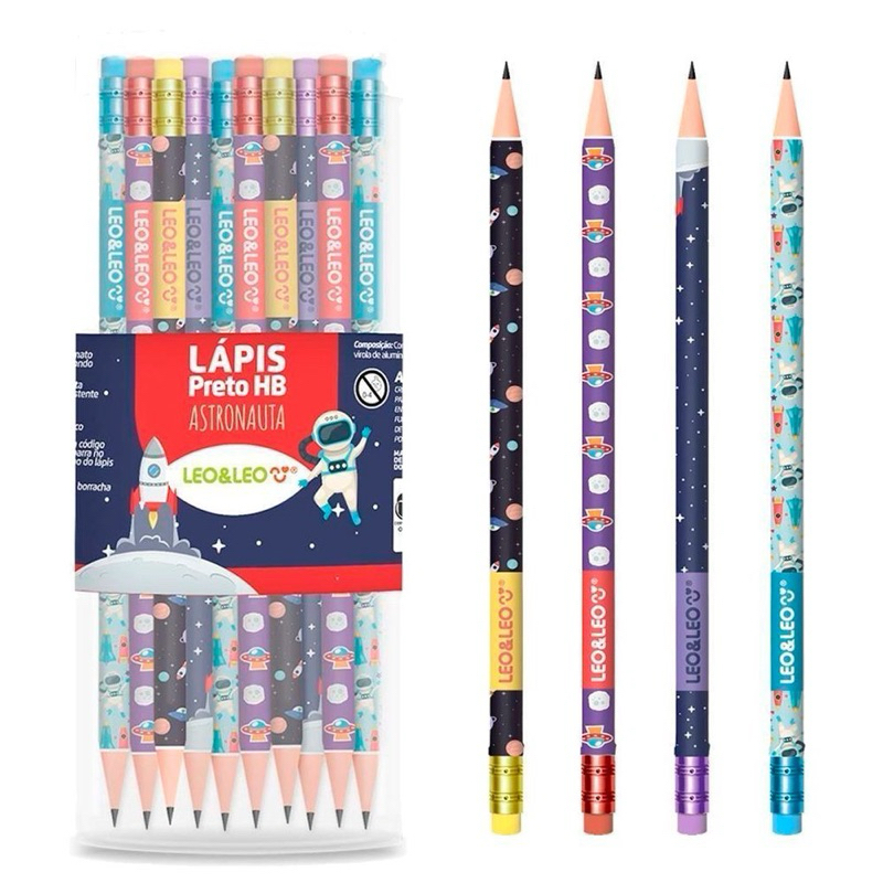 Lápis Preto Com Borracha - Lápis Preto Decorado C/ 72 Unidades / Borracha Na Ponta. - HB
