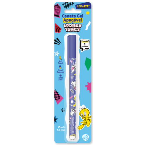CANETA APAGÁVEL GEL 0.7 LOONEY TUNES AZUL/PRETA -1 UNIDADE- LEOARTE