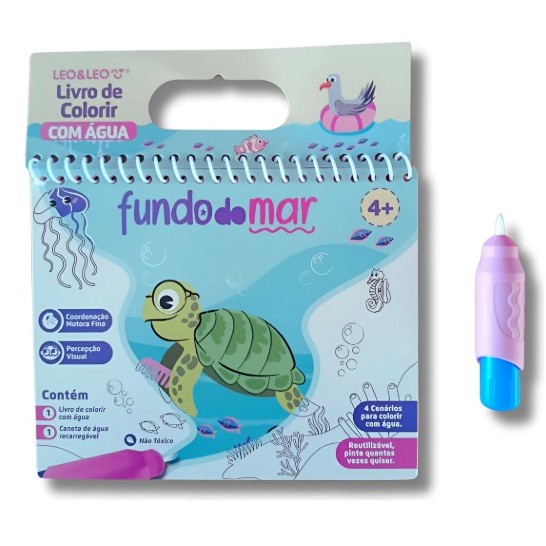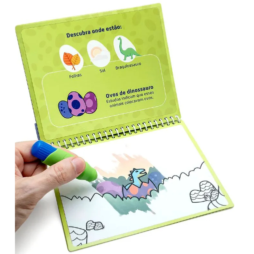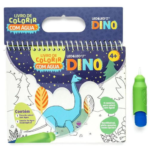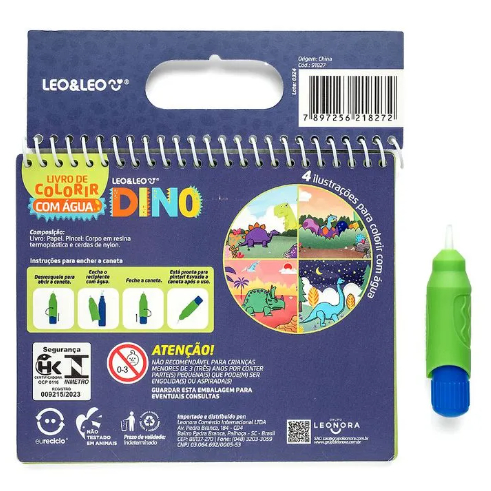 LIVRO DE COLORIR COM ÁGUA DINO - OPPBAG C/ 1 UND 4 PÁGINAS + PINCEL - LEO&LEO