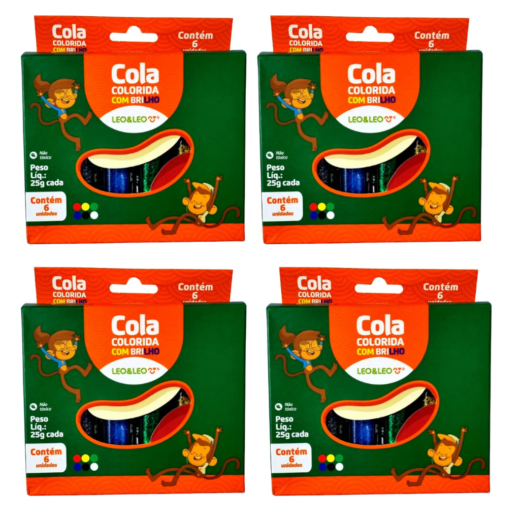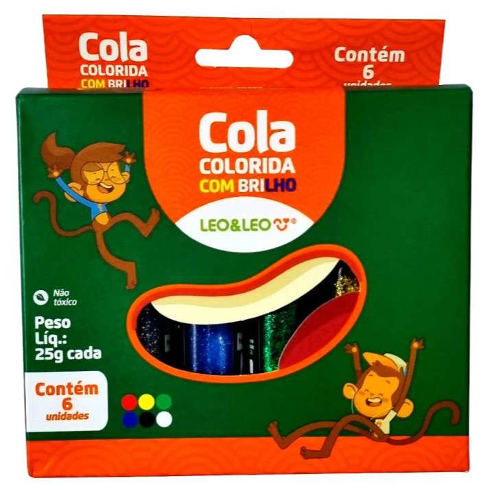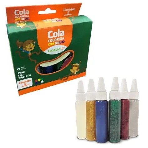 Cola Colorida C/ Glitter 25g Cx C/ 6 Cores - Leo & Leo