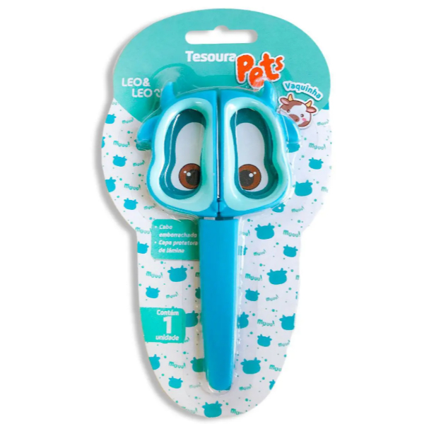 Tesoura Escolar Infantil Pets Com Capa Protetora
