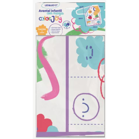 AVENTAL INFANTIL COLOR JOY CRISTAL C/ BOLSO E MANGA COMPRIDA - BLISTER C/ 1 UND LEO&LEO