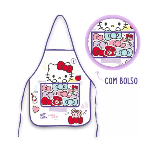 Avental Infantil Com Bolso Hello Kitty Escolar Decorado - Leonora