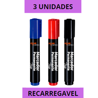 Caneta Marcador Piloto Permanente Jocar Office-3 UNIDADES RECARREGAVEL