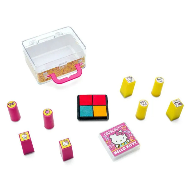 KIT CARIMBO HELLO KITTY - MALETA C/ 8 CARIMBOS + 1 ALMOFADA - LEO&LEO
