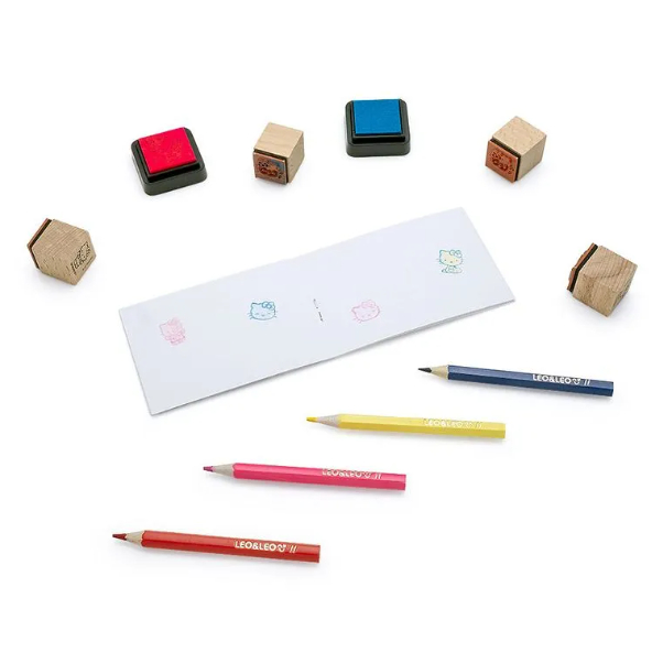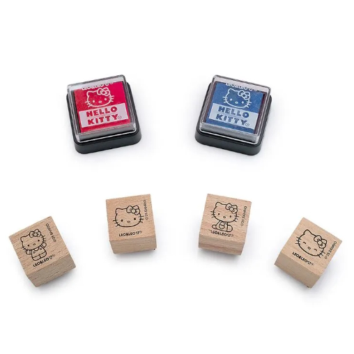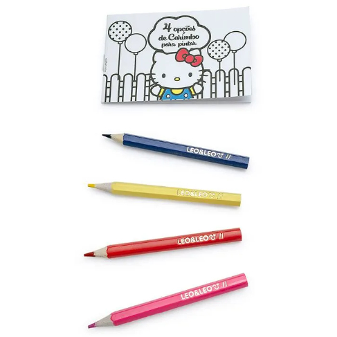 Kit Pintura com Carimbo Hello Kitty - Blister c/ 1 Kit 4 Lápis de Cor + 1 Bloco + 4 Carimbos + 2 Almofadas de Tinta Leo&
