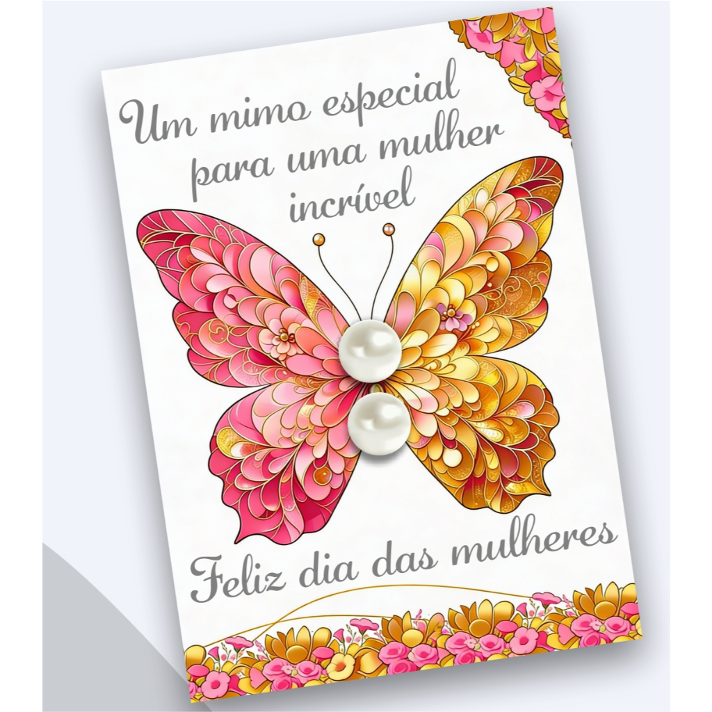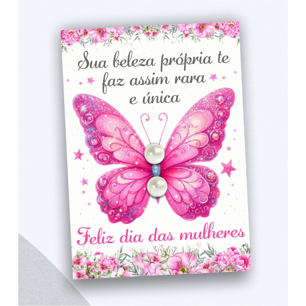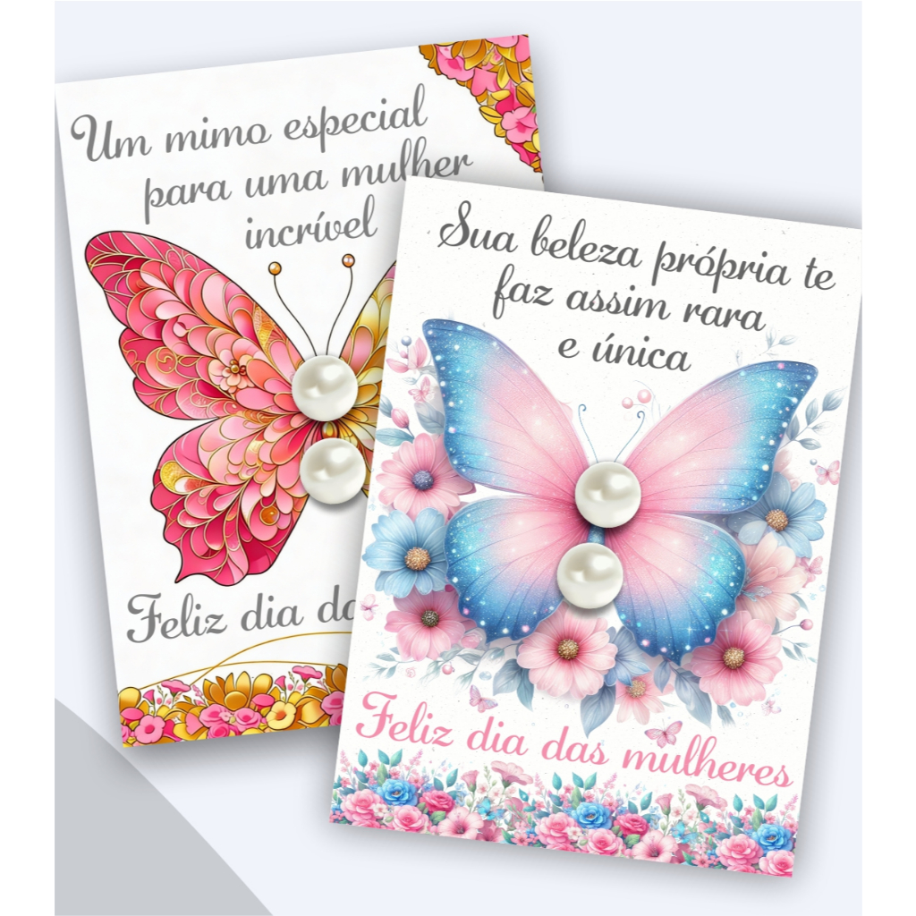 Kit 20/30/40/50/100 Pares de brincos Pérola com tag Dia das Mulheres - Borboletas