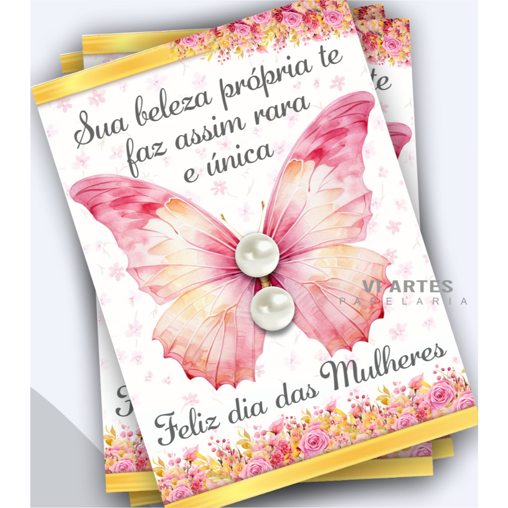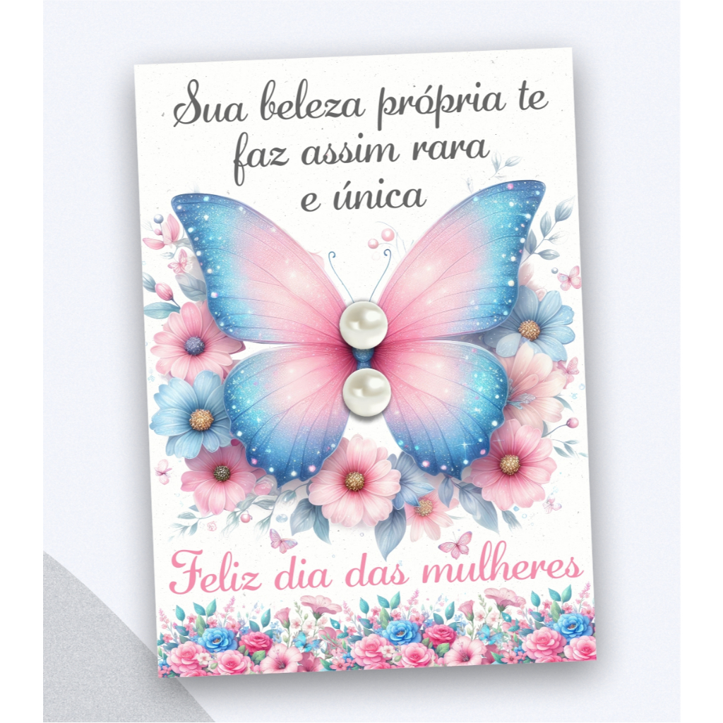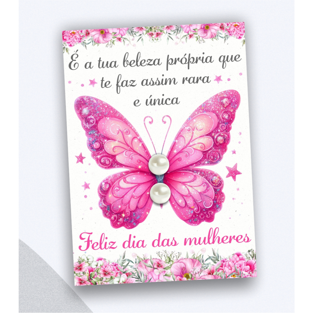 Kit 20/30/40/50/100 Pares de brincos Pérola com tag Dia das Mulheres - Borboletas