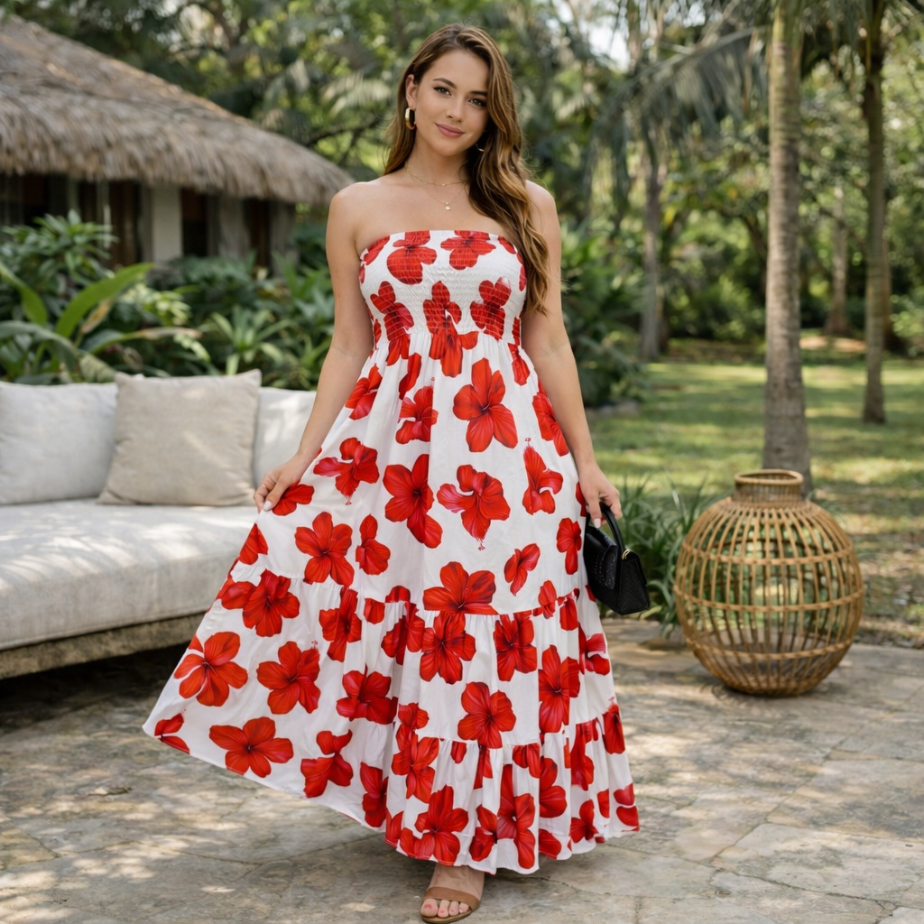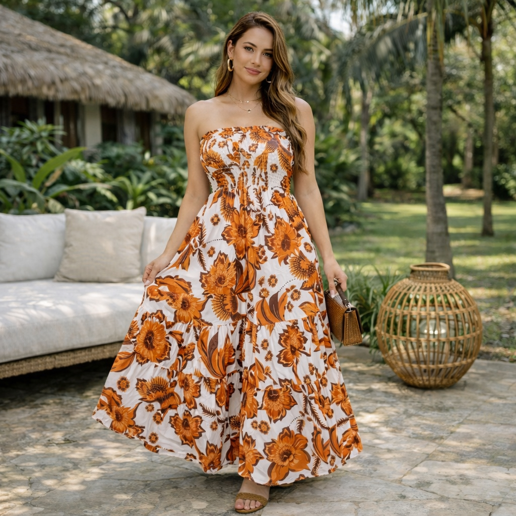 Vestido Longo Tomara que Caia em Sedinha Floral – Busto em Lastex, Confortável e Tamanho Único 38 ao 46