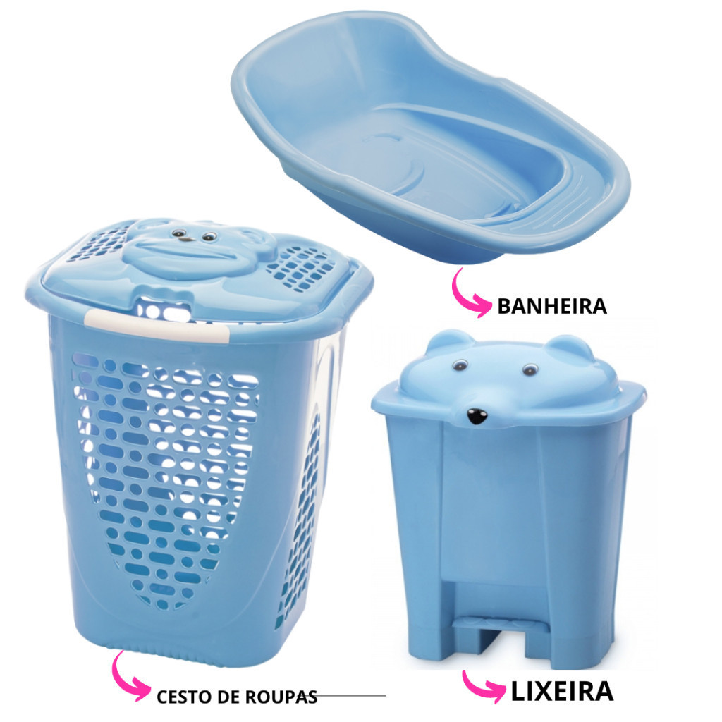 Kit higiene Infantil Banheira, Lixeira e Cesto de Roupa