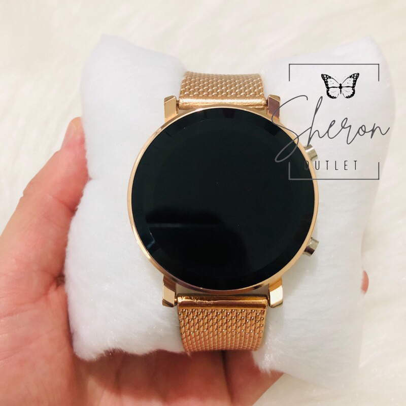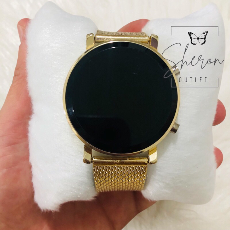Relogio Feminino Led Digital Redondo Prata Preto Dourado