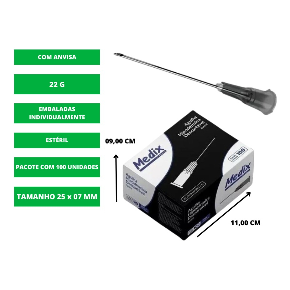 Agulha Descartável 25x 0,70mm (22g) Caixa C/100 Un Medix