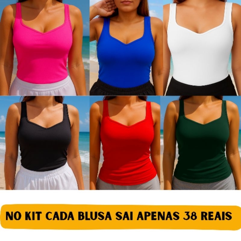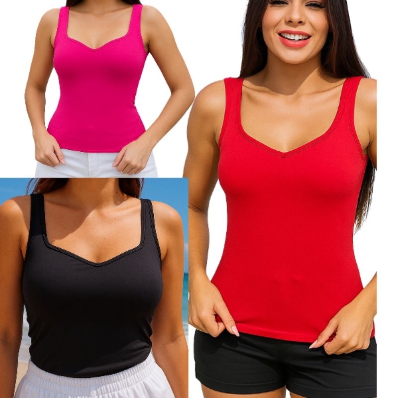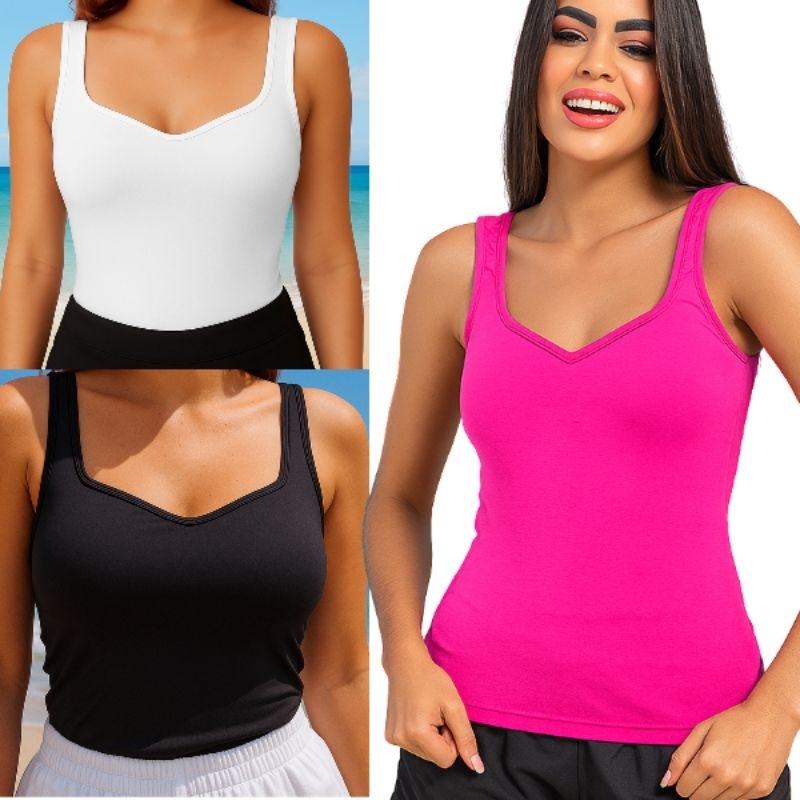 Kit 3 Regata De Suplex Com Bojo Blusa Feminina Alcinha Modeladora Básica Blogueira Afina Cintura Verão Praia Amamentação