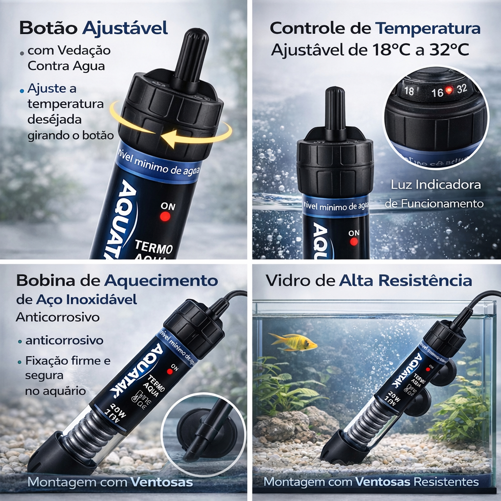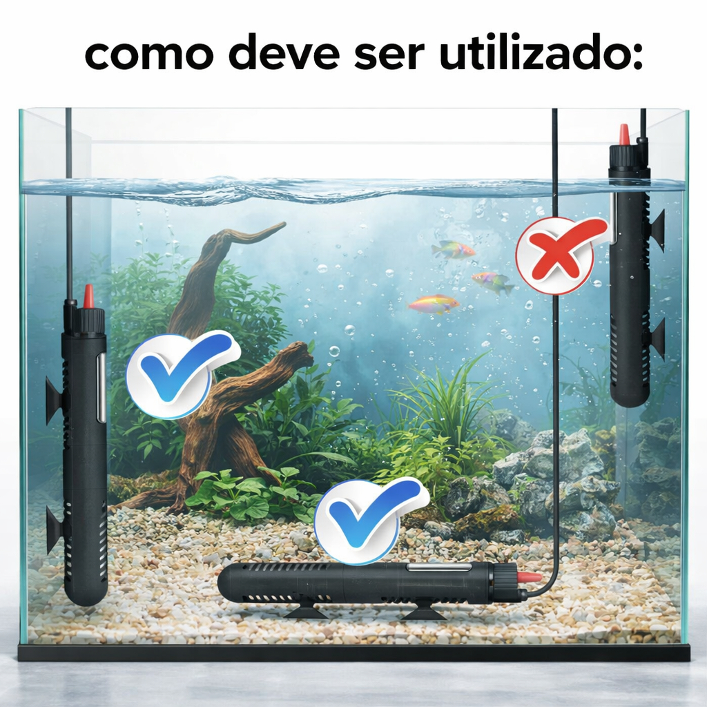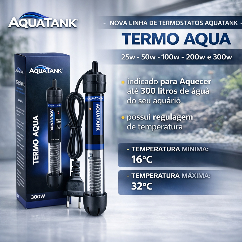Aquecedor Com Termostato Submersível Aquatank Termo Aqua Para Aquários 25w 50w 100w 200w 300w
