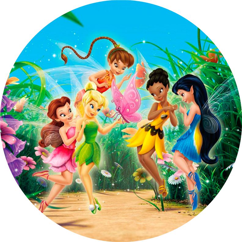 Painel Redondo Tecido Sublimado tema Tinker Bell Sininho