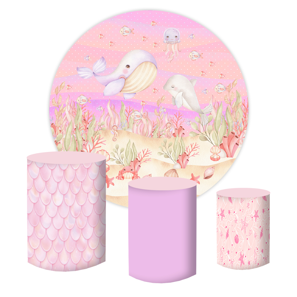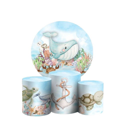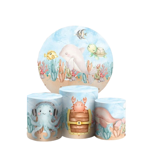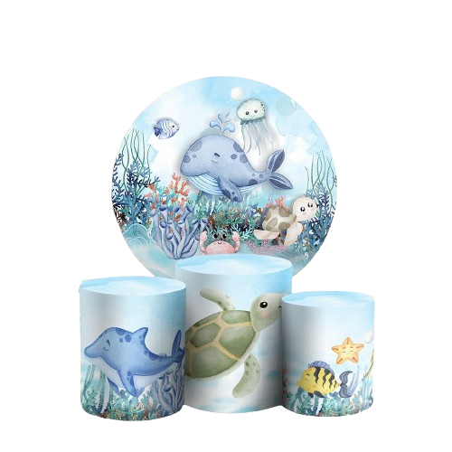 KIT PAINEL REDONDO 1,50 + CAPAS CILINDROS TECIDO SUBLIMADO FUNDO DO MAR