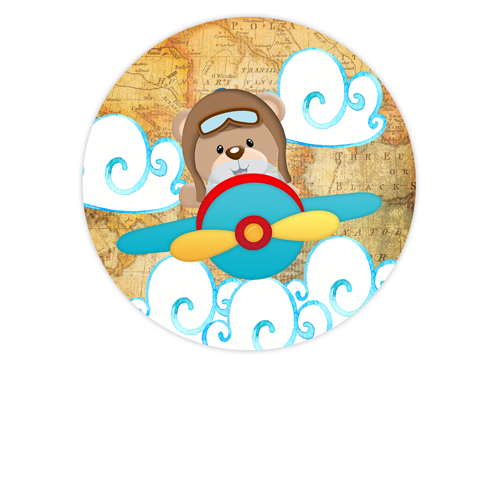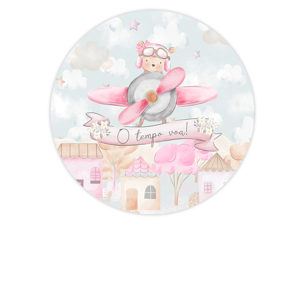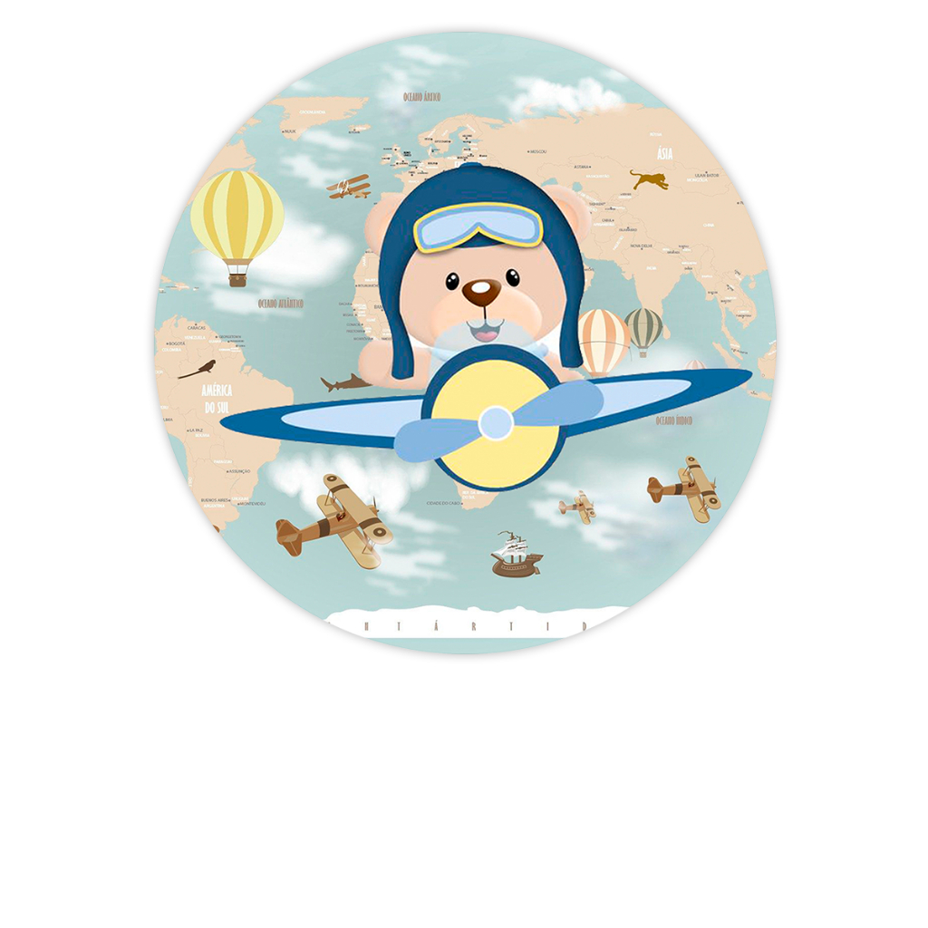 Painel Redondo Tecido Sublimado Ursinho Aviador