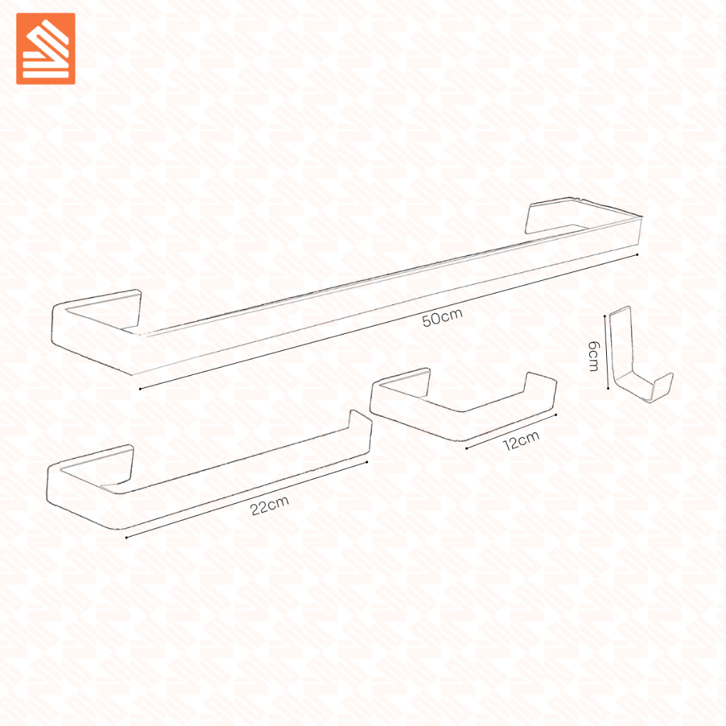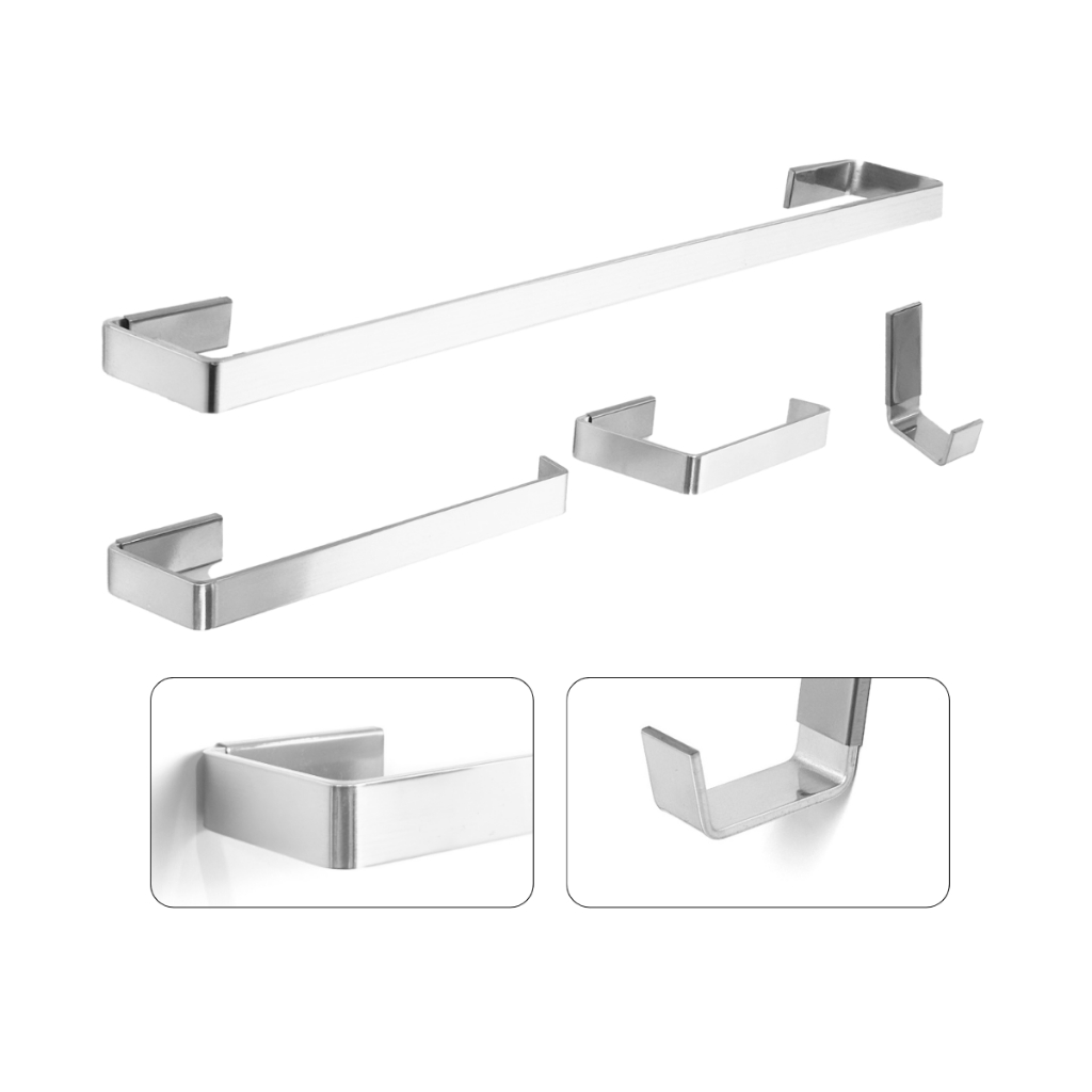 Kit de Acessórios para Banheiro 6 Peças com Porta Shampoo Reto Aste Quadrada Polido Cromado Luxo