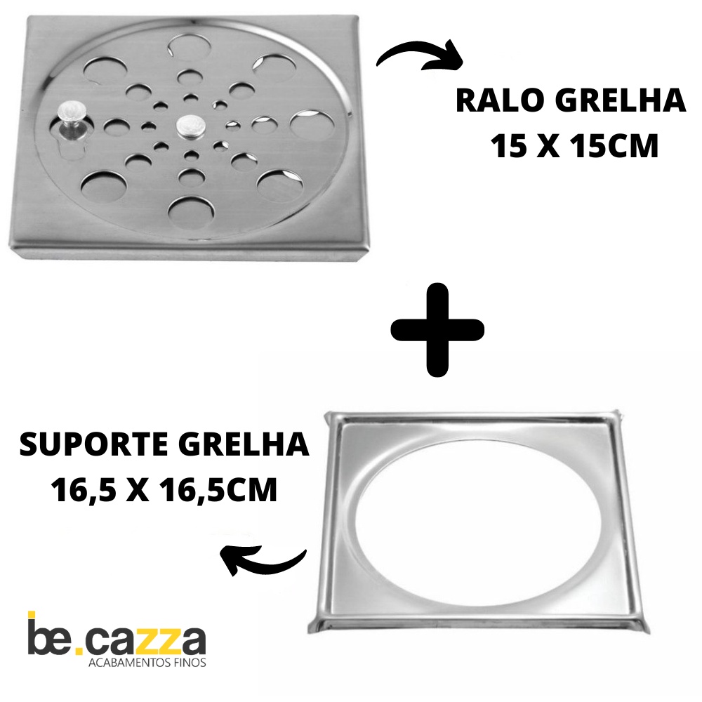 Ralo Grelha Tampa Inox 15x15 CM para Banheiro Lavabo Área Externa Quadrado com Caixilho - Com Fechamento contra Insetos