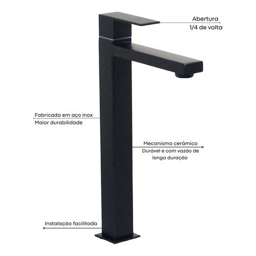Kit Acessórios Banheiro Preto Fosco + Ducha + Torneira Bica Alta