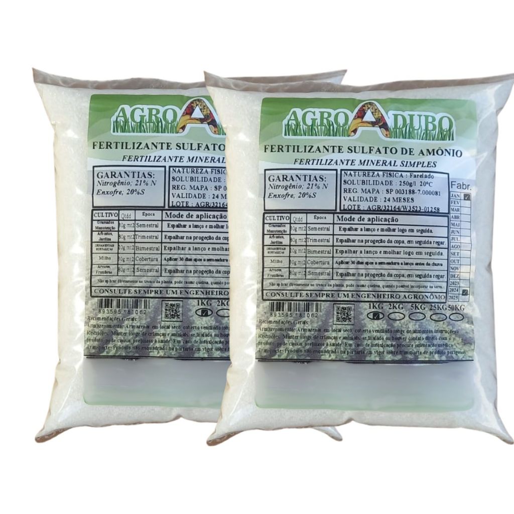 Fertilizante Sulfato De Amônio 2Kg Adubo 100% Soluvel