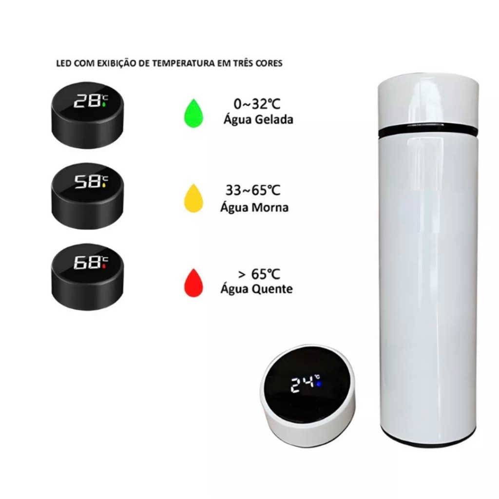 Garrafa Térmica Em Aço Inox Com Termômetro Digital 500ml Com Visor de LED