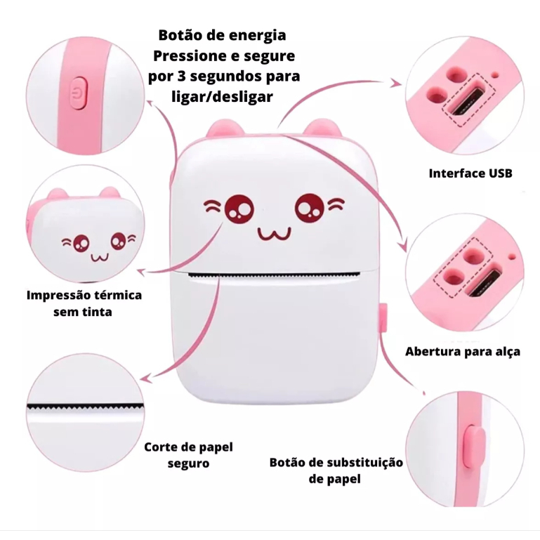 Mini impressora portátil de impressão sem fio de fotos de desenhos animados para Android Ios