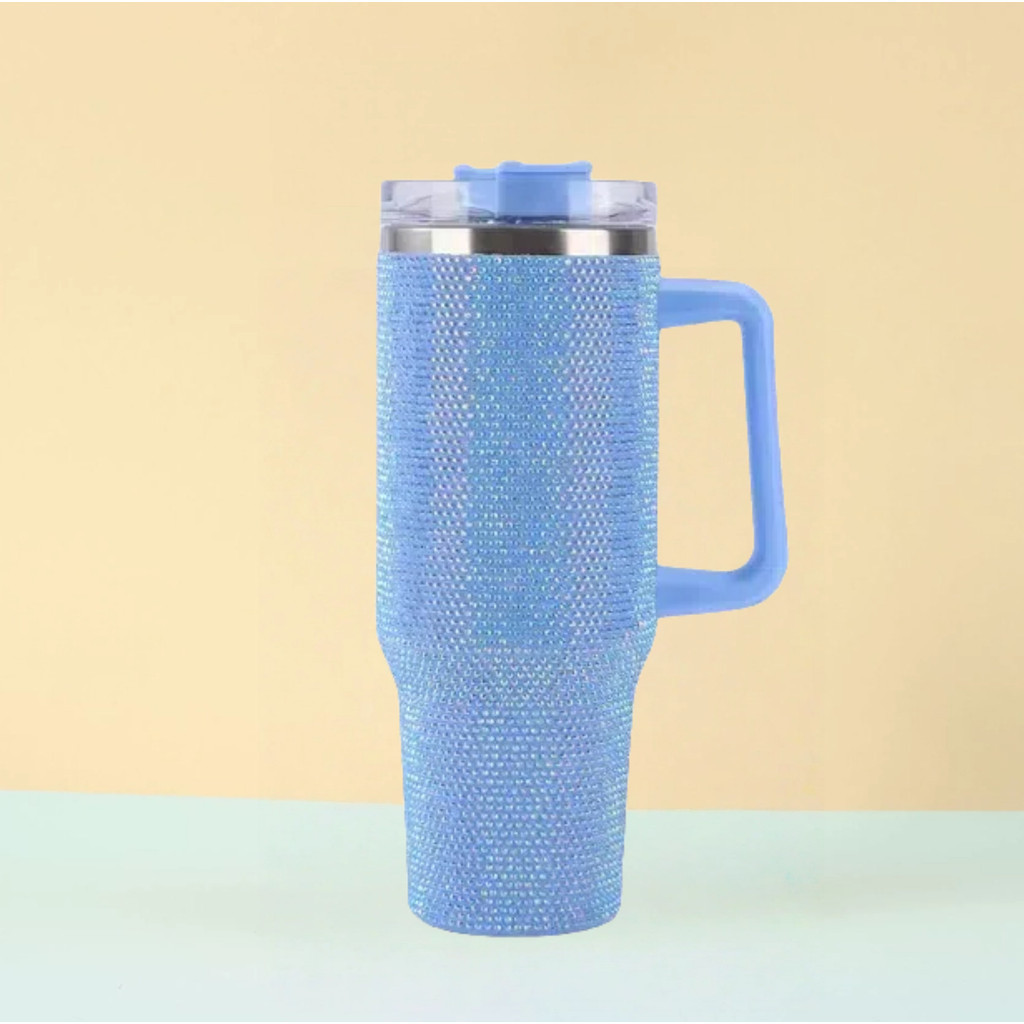 Copo Térmico 1200ml de Aço Inoxidável Strass Brilhante Com Tampa e Canudo