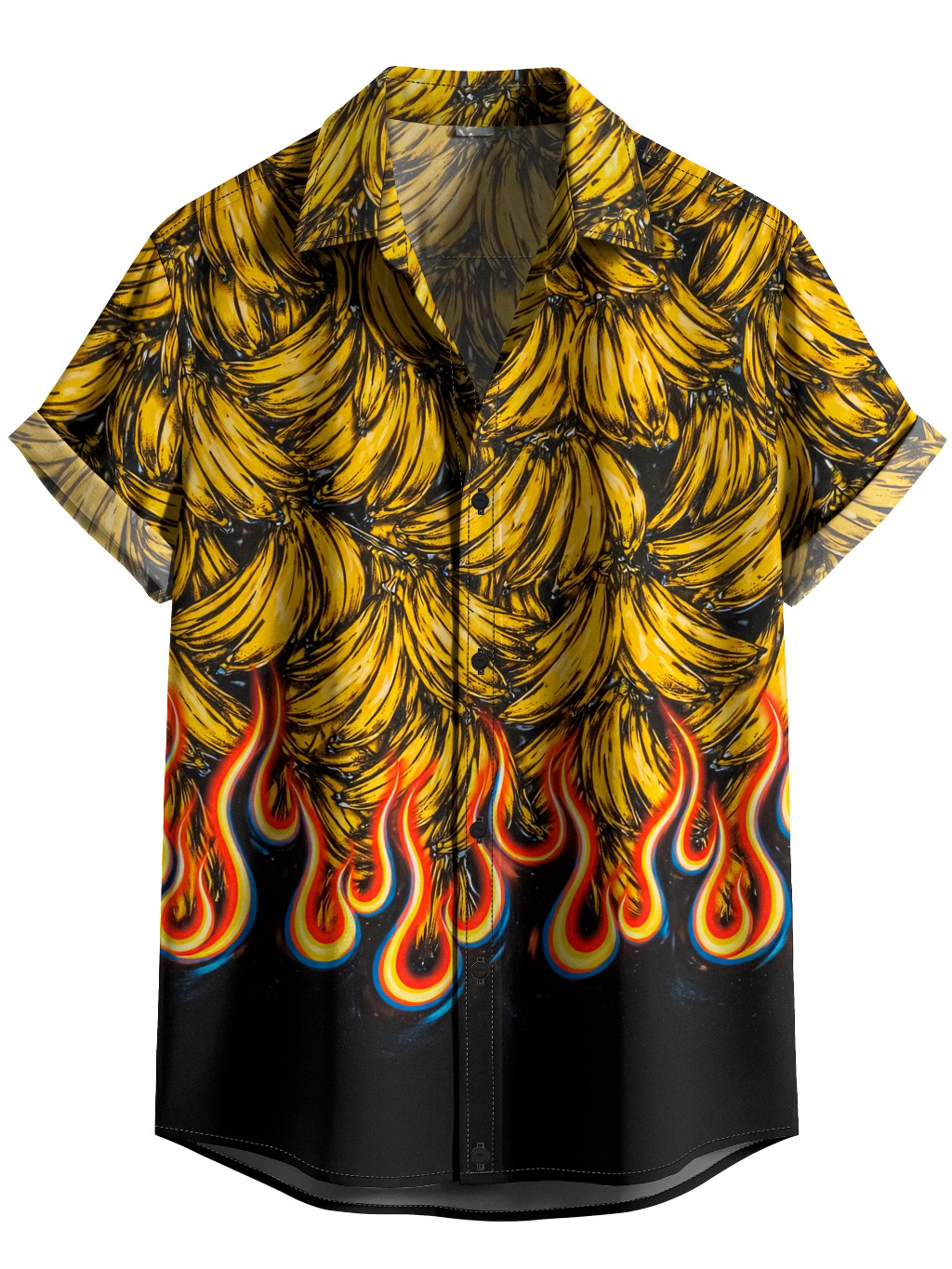 Camisa De Botão Banana Flame Estampa Tropical Ousada [Ref-412]