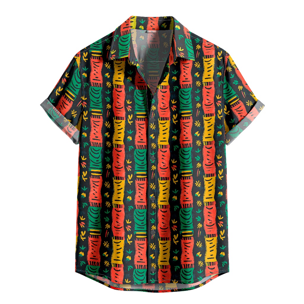 Camisa De Botão Tribal Africana Étnica Colorida Estilo Afro Tribal [Ref-010]