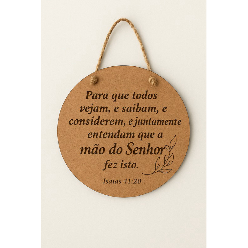Placa Decorativa MDF Branco com Versículo Bíblico – Isaías 41:20 | Decoração Cristã com Sisal