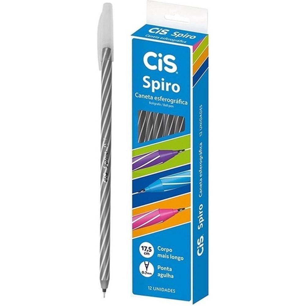 Caneta Esferográfica SPIRO, CIS, Preto, Caixa com 12 unidades 0.7mm