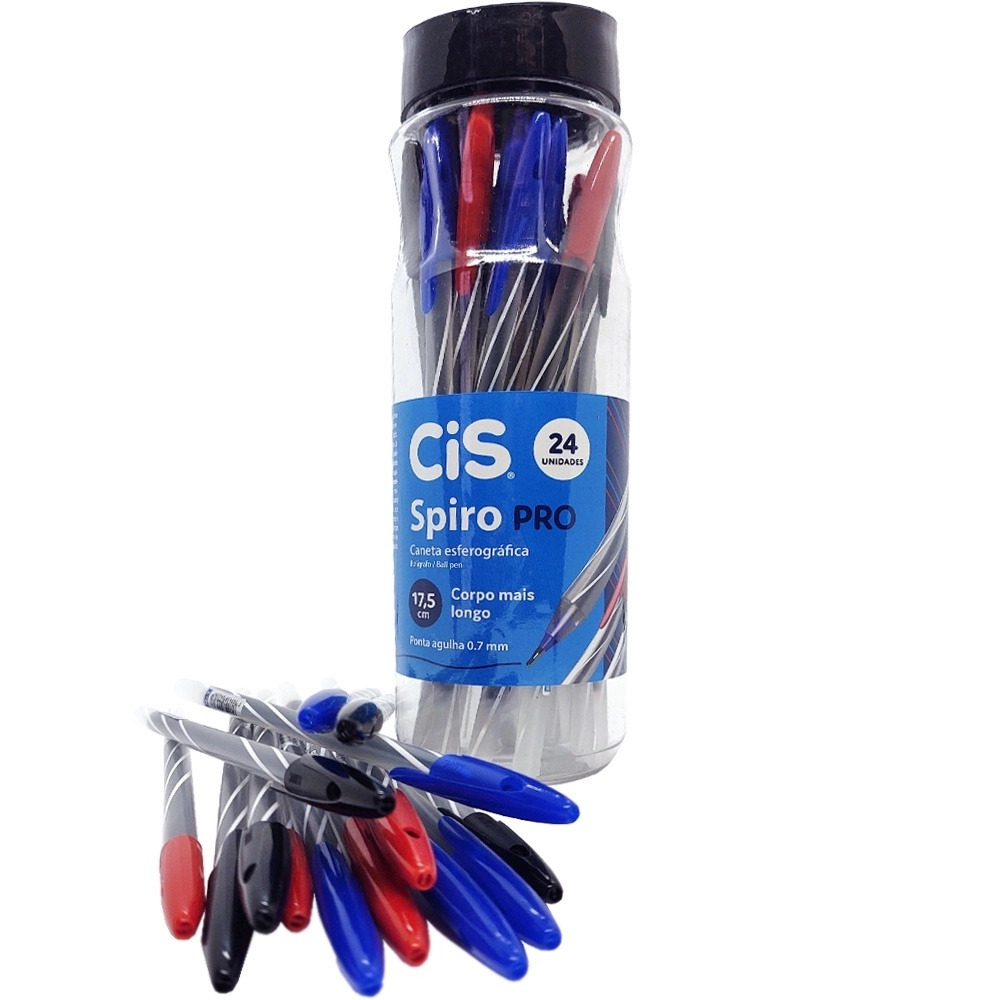 Kit Caneta Esferográfica CIS SPIRO 24 unidades Canetas 0.7mm - Azul, Vermelho, Preto