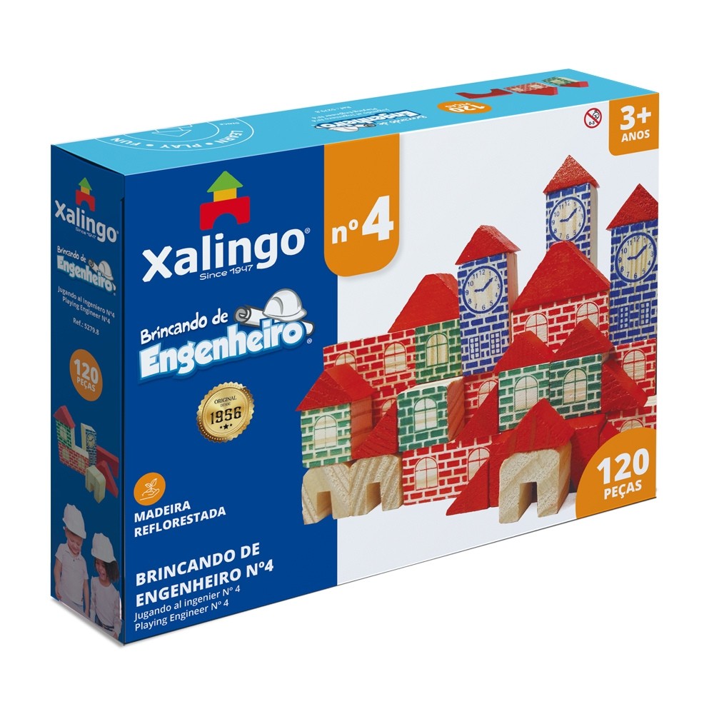 Jogo Brincando De Engenheiro N4, Xalingo, 120 Peças Em Madeira
