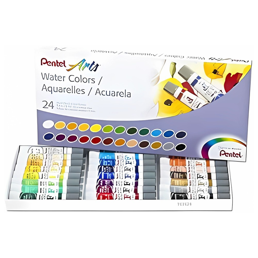 Tinta Aquarela Pentel 24 Cores WFRS-24 à Base de Água | Alta Pigmentação e Solubilidade
