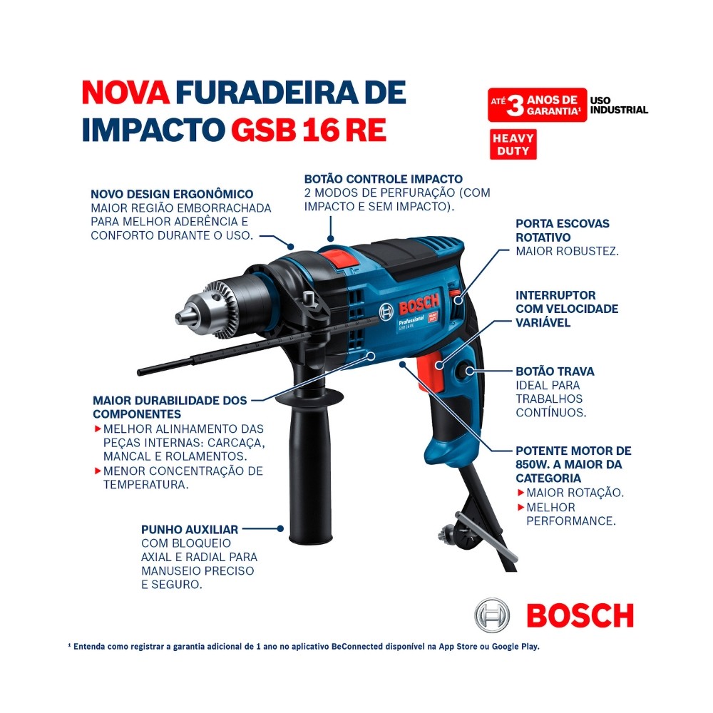 Furadeira de Impacto Profissional Bosch GSB 16 RE 850W 1/2" 127V – Alta Potência